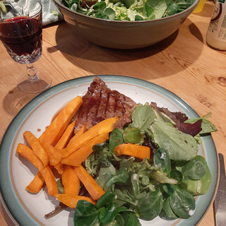 Kacheltje aan gestoken en deze zorgde er al snel voor dat het binnen behagelijk werd. s Avonds aten we heerlijk sla, faux filet klaargemaakt op het houtfornuis en zoete aardappels uit de spiksplinternieuwe oven.